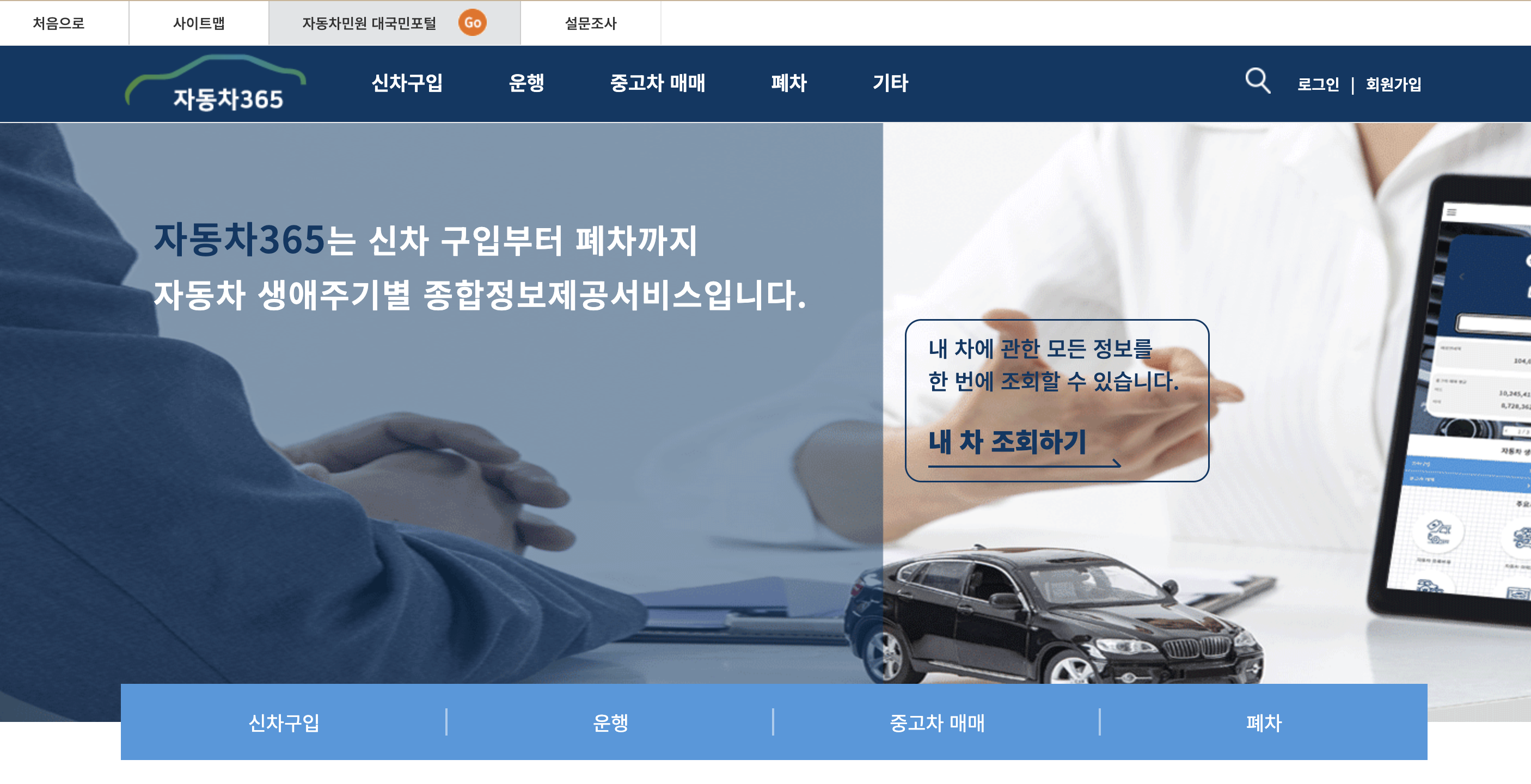 자동차365는 신차 구입부터 폐차까지 자동차 생애주기별 종합정보제공서비스 입니다.